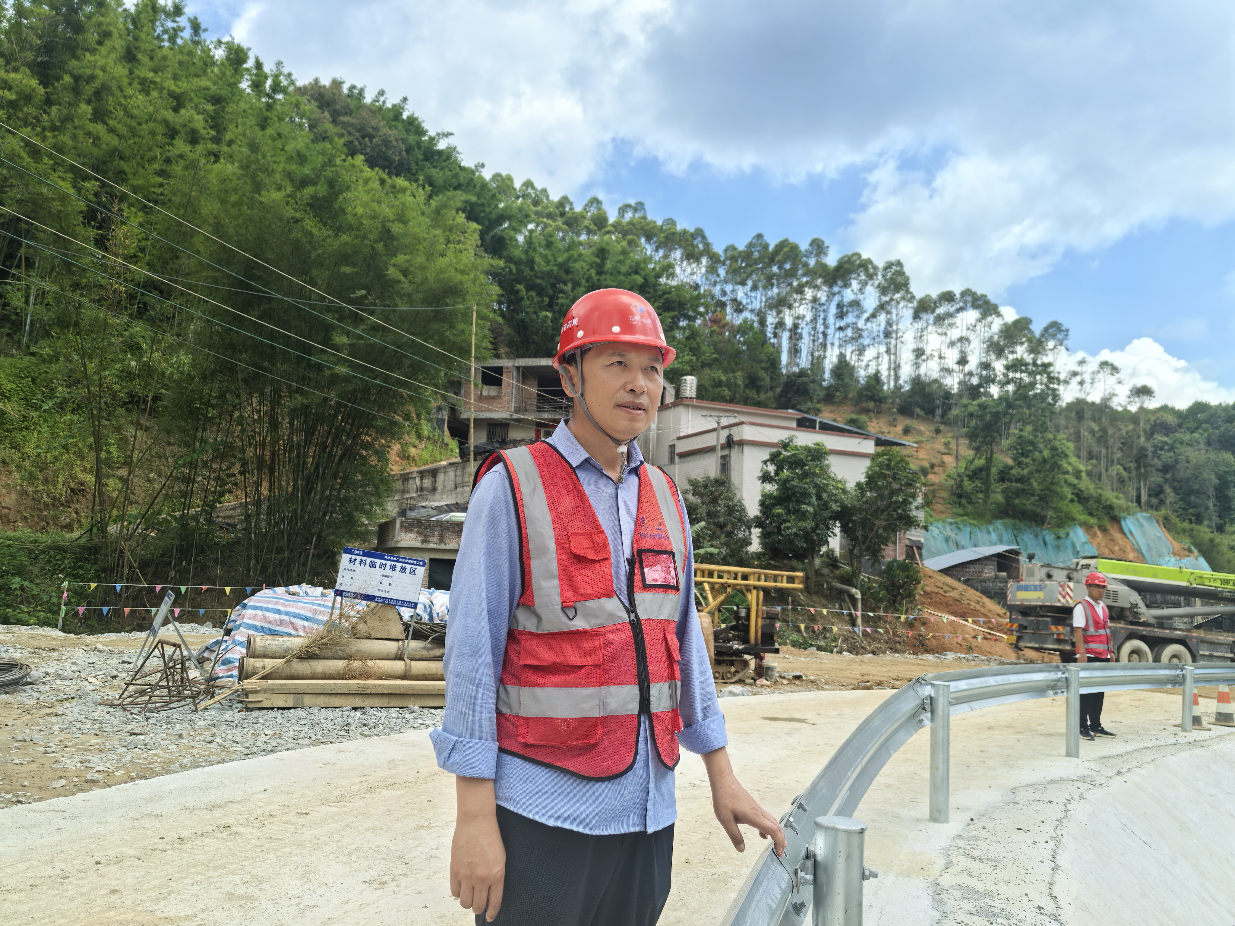 在環(huán)北廣西工地,隧洞工作面出現(xiàn)巖層變化時(shí)及時(shí)指導(dǎo)工作,在隧洞塌方處理的部位,他及時(shí)觀察現(xiàn)場(chǎng),及時(shí)和工程技術(shù)管理人員調(diào)整施工方案,確保工程安全及進(jìn)度。