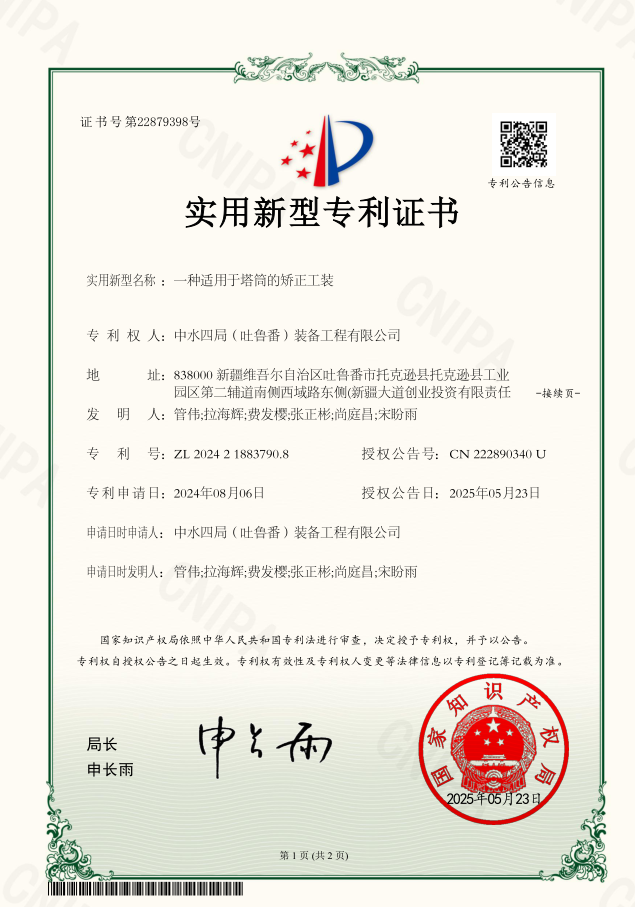 近日,新疆分公司申報的實用新型專利《一種適用于塔筒的矯正工裝》喜獲國家知識產權局授權。 《一種適用于塔筒的矯正工裝》適用于塔筒的矯正工裝技術領域。風電塔筒在生產過程中,由于卷圓設備不良、卷圓操作不當、噴砂滾輪放置不到位以及吊運、儲存、運輸過程中的碰撞等因素,筒體容易出現凹陷缺陷。為克服現有技術的不足,設計研究了該工裝,該工裝包括固定基板、弧形限位板、轉動把手、移動鉸接座等,相對于傳統處理方式擁有矯正精準便于加工、結構穩固限位可靠、防止損壞塔筒、適配性強等優點。 后續,新疆分公司將繼續秉持創新驅動發展戰略,加大在相關技術領域的研發投入,不斷探索新技術、新工藝、新工裝。同時,分公司也將加強知識產權保護和技術成果轉化,讓創新成果更好地服務于生產實踐,創造更大的經濟價值和效益。 |